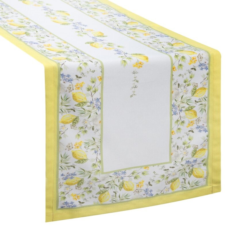 Plamoodporny bieżnik dekoracyjny z ozdobnym nadrukiem szerokość: 40 cm, długość: 140 cm, kolor: biały, Skład: 80% poliester, 20% bawełna