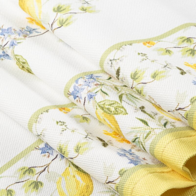 Plamoodporny obrus dekoracyjny z ozdobnym nadrukiem szerokość: 110 cm, długość: 140 cm, kolor: biały, Skład: 80% poliester, 20% bawełna