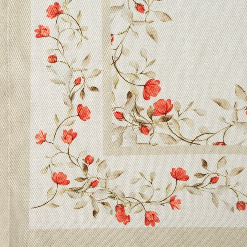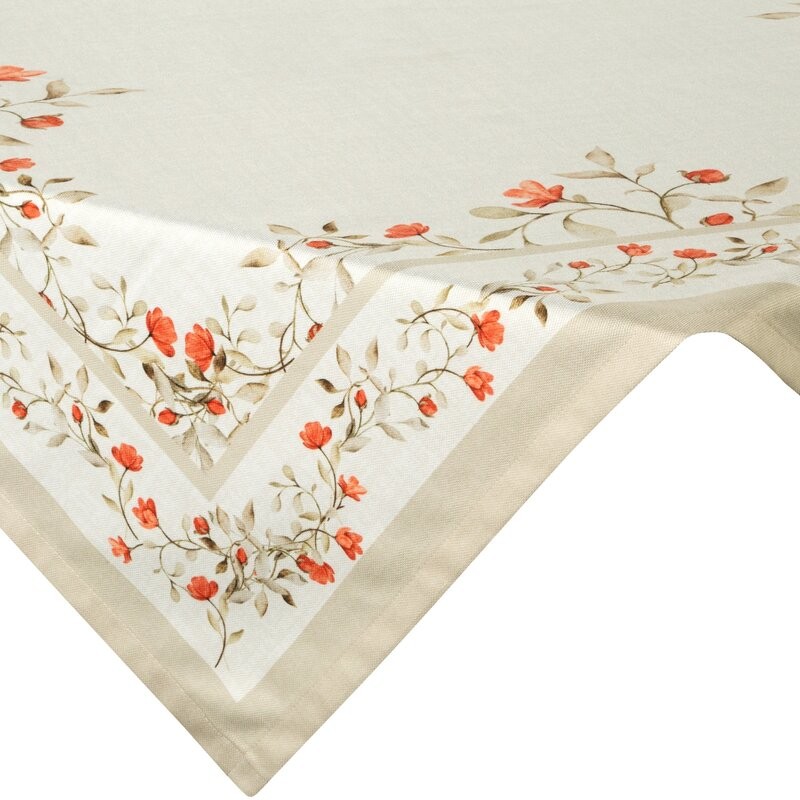 Obrus z drukowanym wzorem w kwiaty szerokość: 140 cm, długość: 220 cm, kolor: naturalny, Gramatura: 210 GSM, Skład: 100% poliester