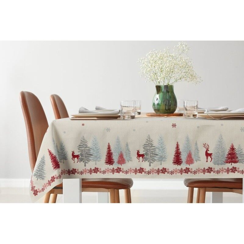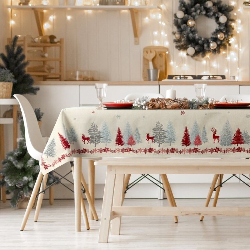 Szukasz tradycyjnych wzorów, które pięknie zaprezentują się w klasycznym wnętrzu? Świąteczny obrus gobelinowy wykonany z grubej tkaniny ozdobiony motywem skandynawskim, to dekoracja w sam raz na okres świąteczny. Grubsza żakardowa tkanina gwarantuje piękny efekt dekoracyjny, a uzyskany techniką tkania wzór sprawia, że obrus pięknie się prezentuje zarówno we wnętrzu w stylu rustykalnym, jak i w nowoczesnej stylizacji retro czy folk. Wysoka jakość oraz staranne wykonanie gwarantują satysfakcję z produktu, a skandynawski motyw znakomicie ożywia wnętrze, wprowadzając do aranżacji radosny świąteczny nastrój.