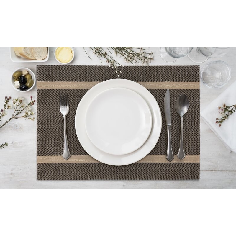 Podkładka na stół beżowo, brązowa 30x45 cm RUBY zdobiona pasami pleciona