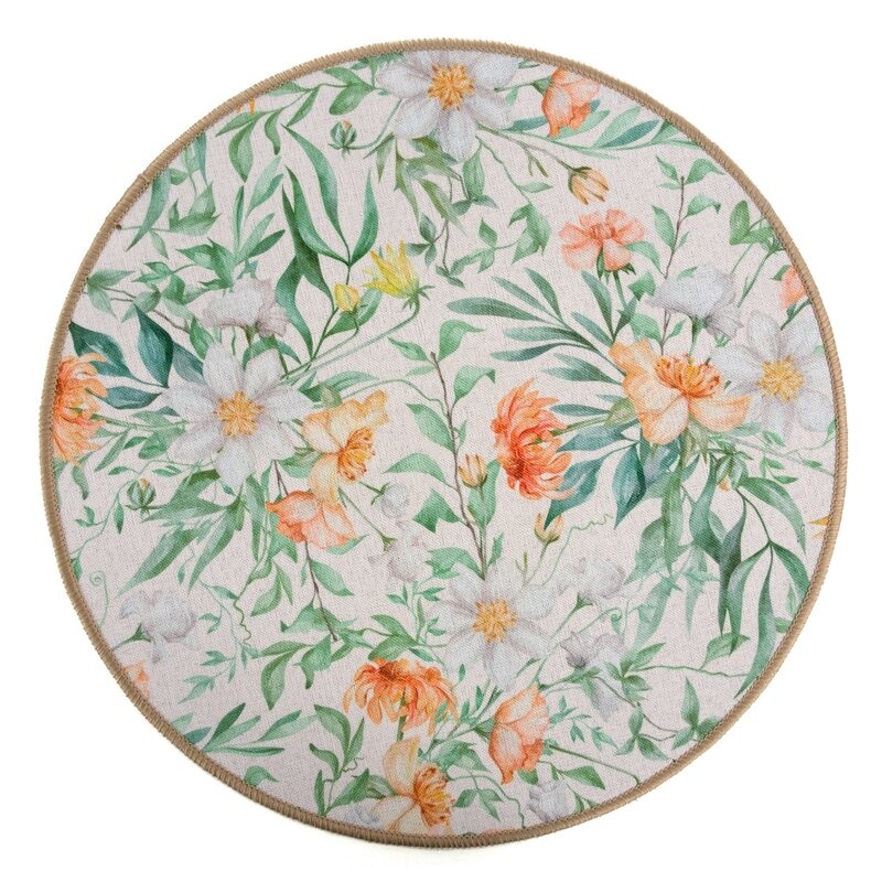 Okrągła podkładka z nadrukowanym motywem kwiatowym kolor: zielony, Skład: 70% guma, 30% poliester SZT.6