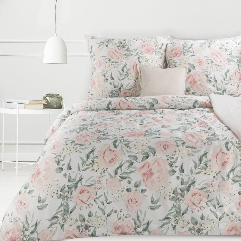 Pościel 160x200 cm z satyny bawełnianej kolor biało, pudrowy z motywem kwiatów SPRING 76
