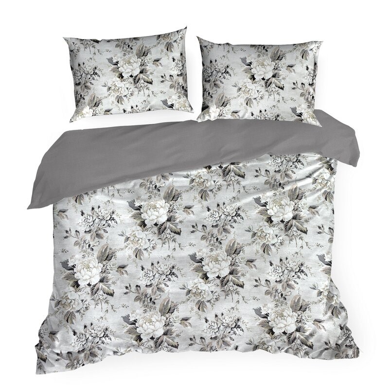 Pościel 160x200 cm z satyny bawełnianej kolor biało, stalowy z motywem kwiatów SPRING 67