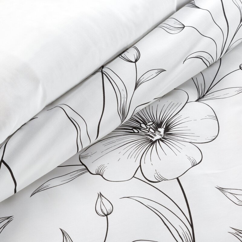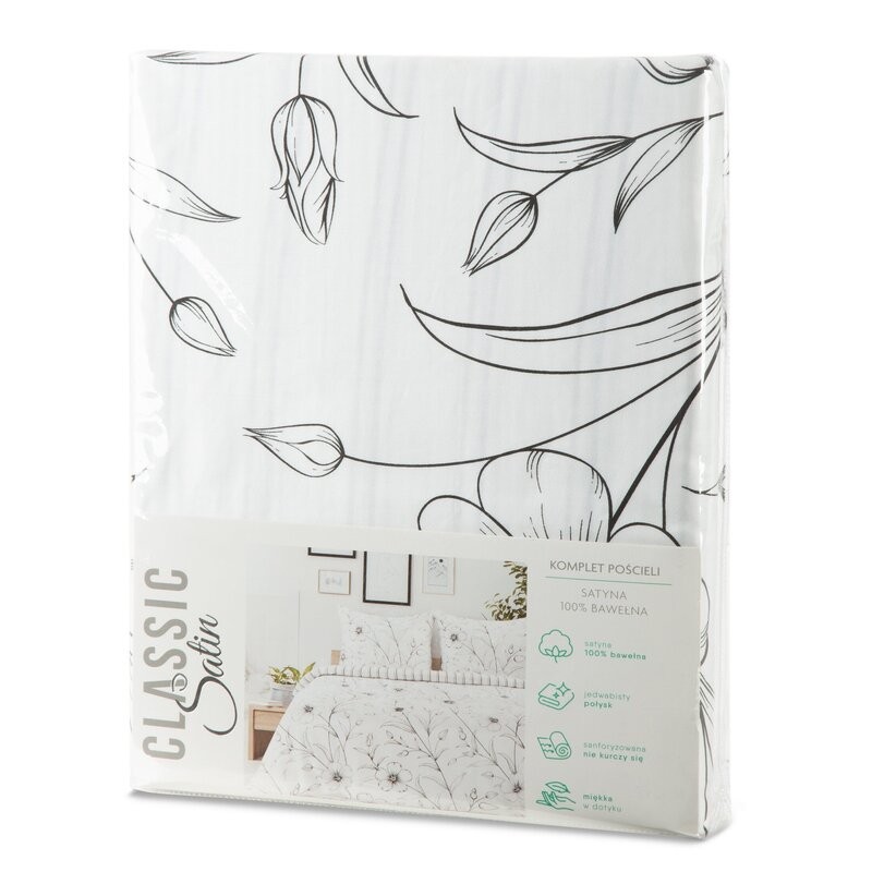 Pościel 220x200 cm z satyny bawełnianej kolor biały, grafitowy z motywem roślinnym SPRING 75