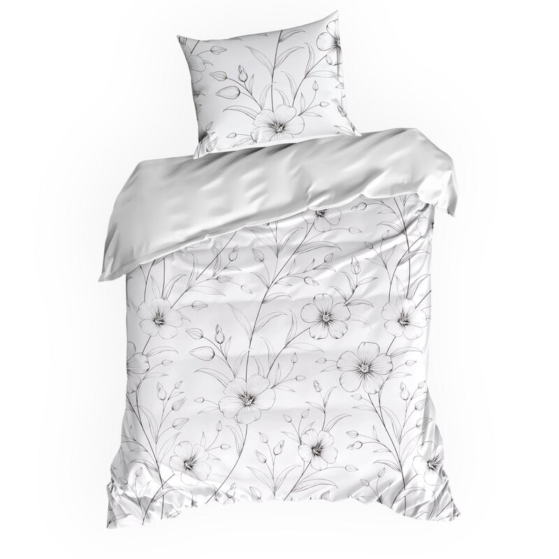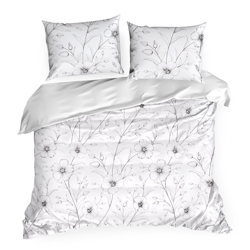 Pościel 160x200 cm z satyny bawełnianej kolor biało, stalowy z motywem kwiatów SPRING 67