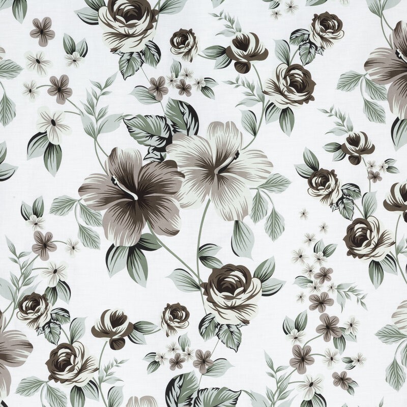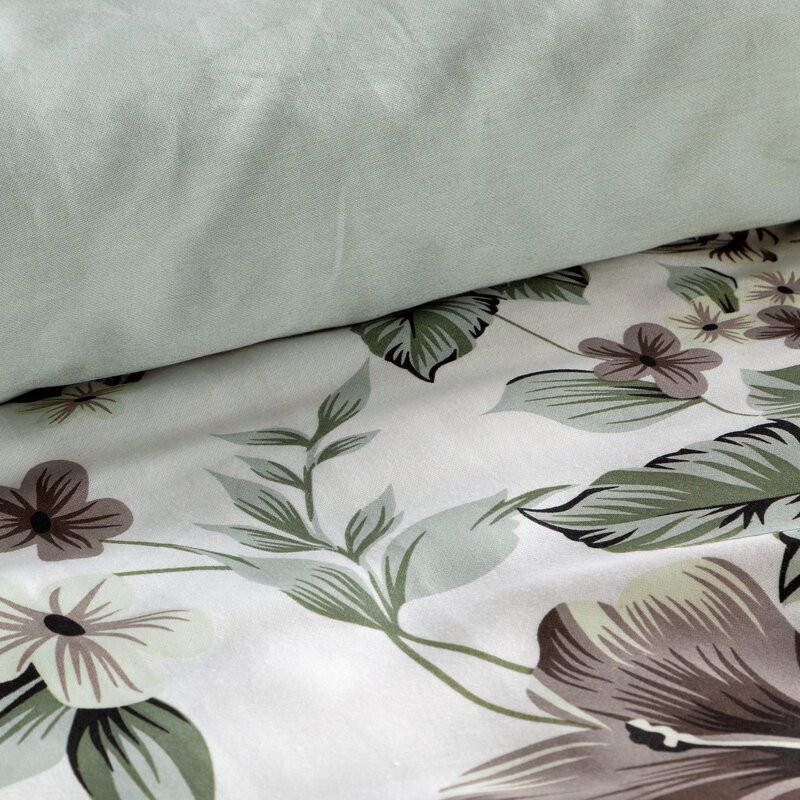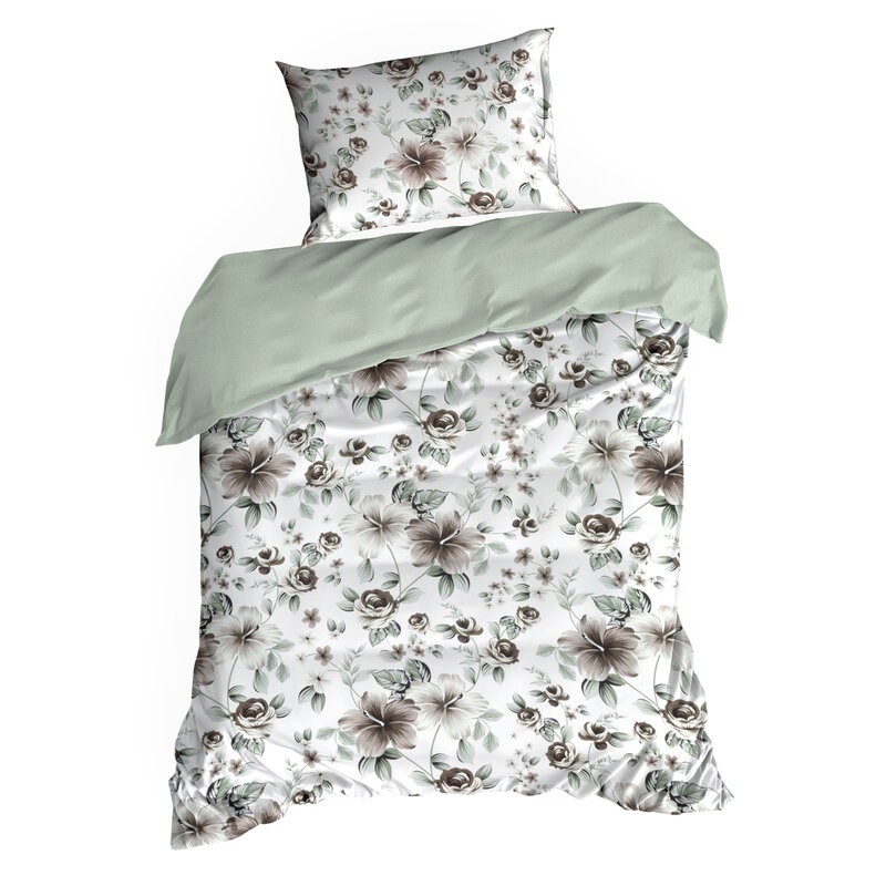 Pościel 140x200 cm z satyny bawełnianej kolor srebrno, oliwkowy z motywem roślinnym SPRING 62