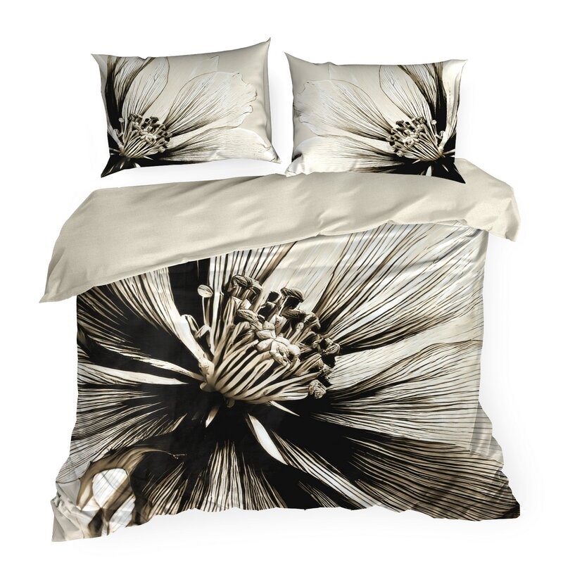 Pościel 220x200 cm satyna bawełniana kolor biało, czarny z eleganckim wzorem roślinnym SPRING 64