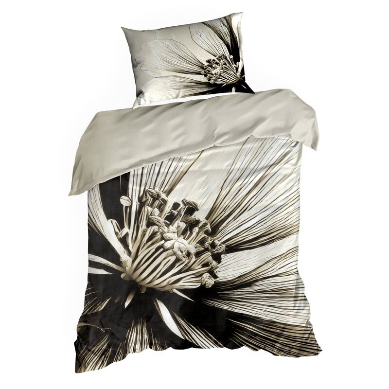 Komplet pościeli z satyny bawełnianej z nadrukiem szerokość: 220 cm, długość: 200 cm, kolor: beżowy, Gramatura: 115 GSM, Skład: satyna, 100% bawełna