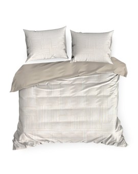 Komplet pościeli bawełnianej z nadrukiem szerokość: 140 cm, długość: 200 cm, kolor: beżowy, Gramatura: 105 GSM, Skład: 100% bawełna