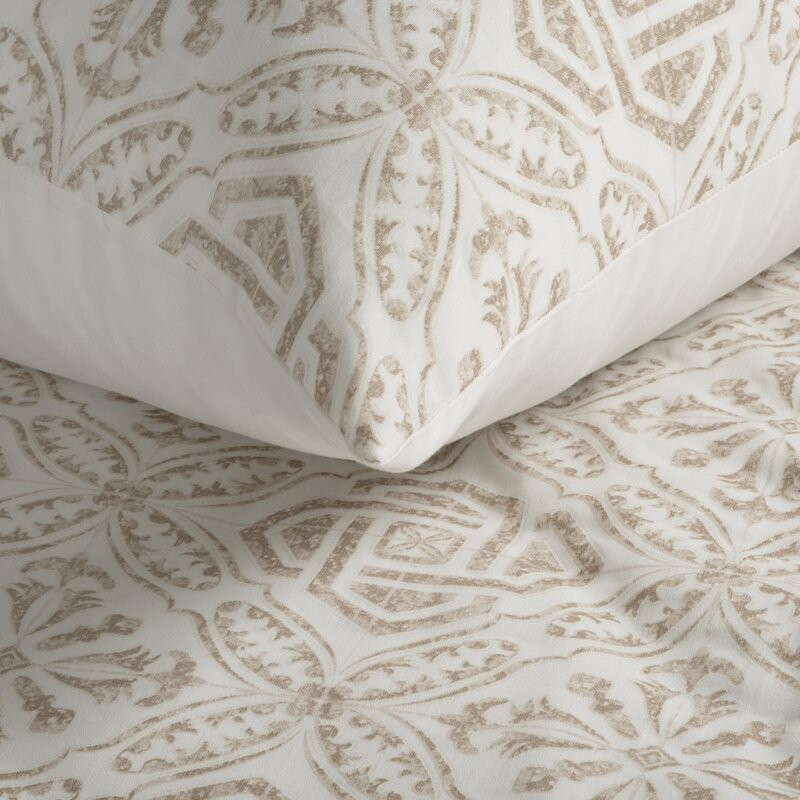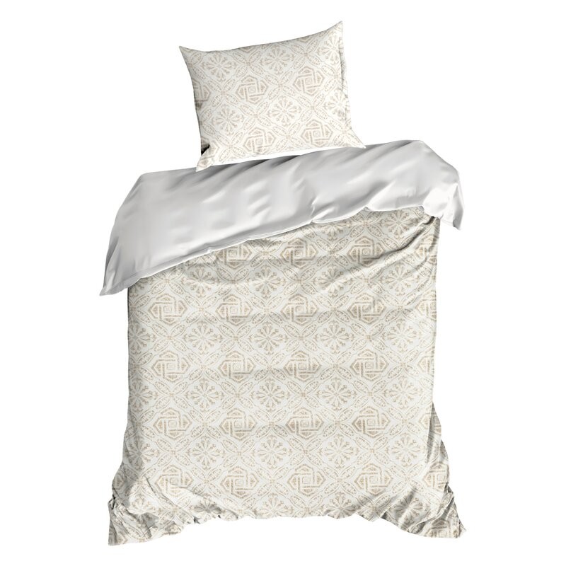 Komplet pościeli z satyny bawełnianej z nadrukiem szerokość: 140 cm, długość: 200 cm, kolor: beżowy, Gramatura: 115 GSM, Skład: satyna, 100% bawełna