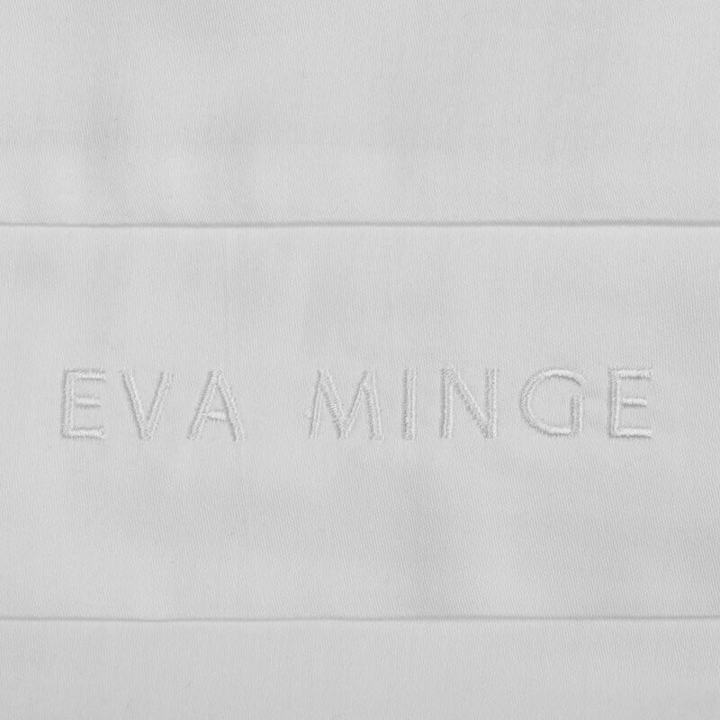 Subtelna, ozdobna kanta dodaje całości szyku i nowoczesnej elegancji. Na kancie znajduje się haft z sygnaturą EVA MINGE, będący symbolem stylu i luksusu. Minimalistyczna forma oraz jednolity kolor czynią ten komplet idealnym wyborem zarówno do klasycznych, jak i nowoczesnych aranżacji wnętrz.