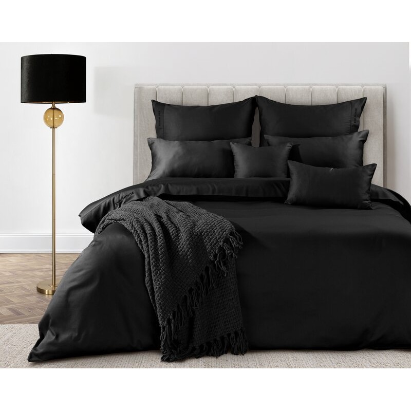 Pościel 160x200 cm z bawełny, makosatyny kolor czarny z ozdobną kantą i haftem kolekcja MINGE ELEGANTE