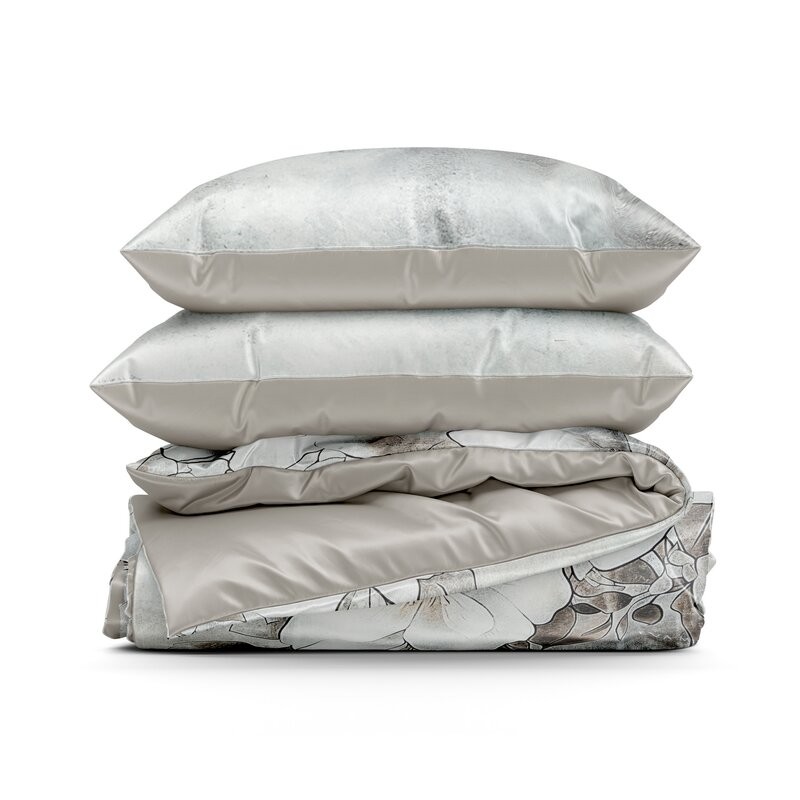 Komplet ekskluzywnej, designerskiej pościeli z satyny bawełnianej z kolekcji polecanej przez Eva Minge. Zapinana na zamek błyskawiczny. Precyzyjne wykonanie. szerokość: 220 cm, długość: 200 cm, Gramatura: 125 GSM, Skład: makosatyna, 100% bawełna