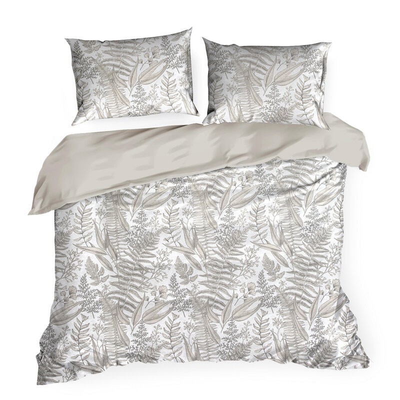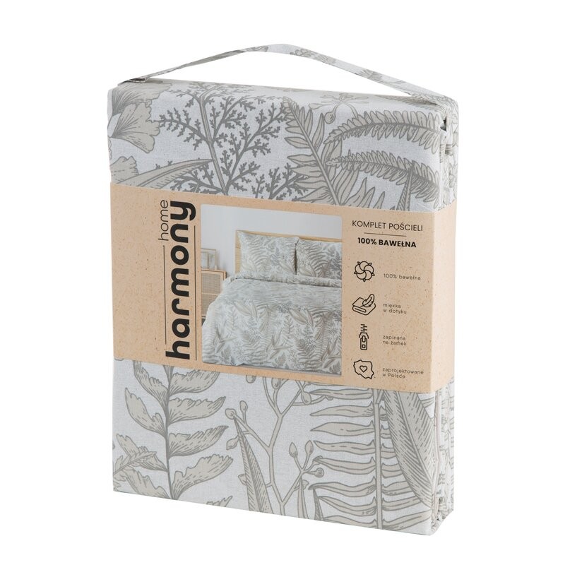 Komplet pościeli bawełnianej z nadrukiem szerokość: 220 cm, długość: 200 cm, kolor: jasnoszary, Gramatura: 115 GSM, Skład: 60% bawełna, 40% poliester