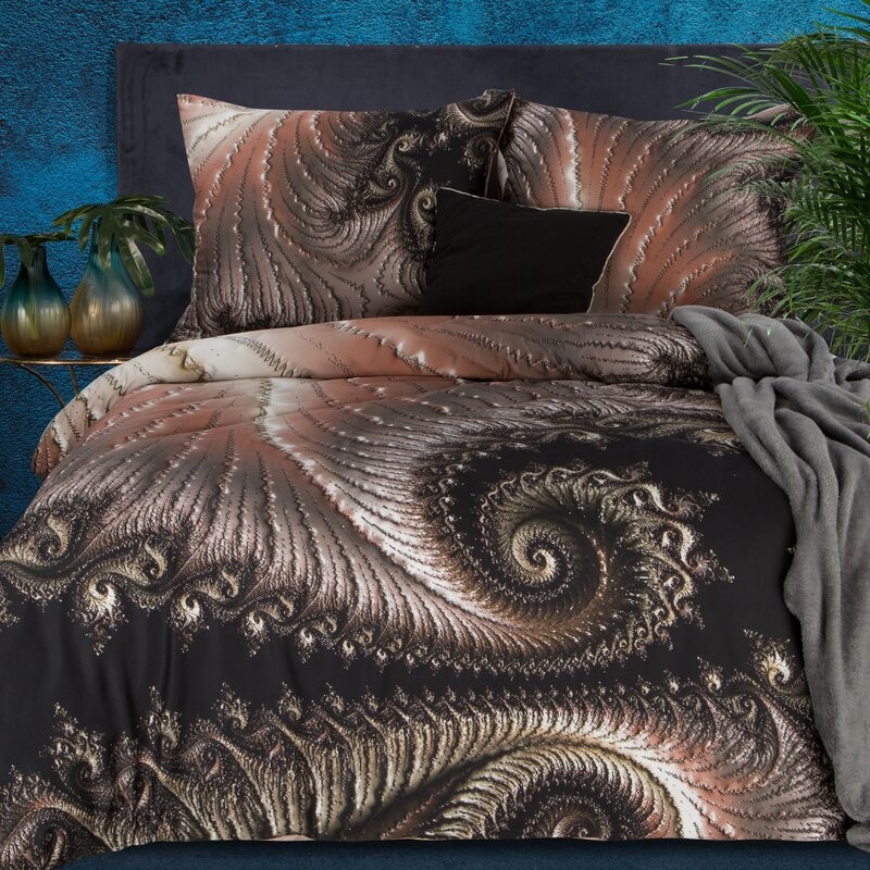 Postaw na elegancję w Twojej sypialni — poznaj komplet wyjątkowej pościeli z dużym fantazyjnym wzorem.