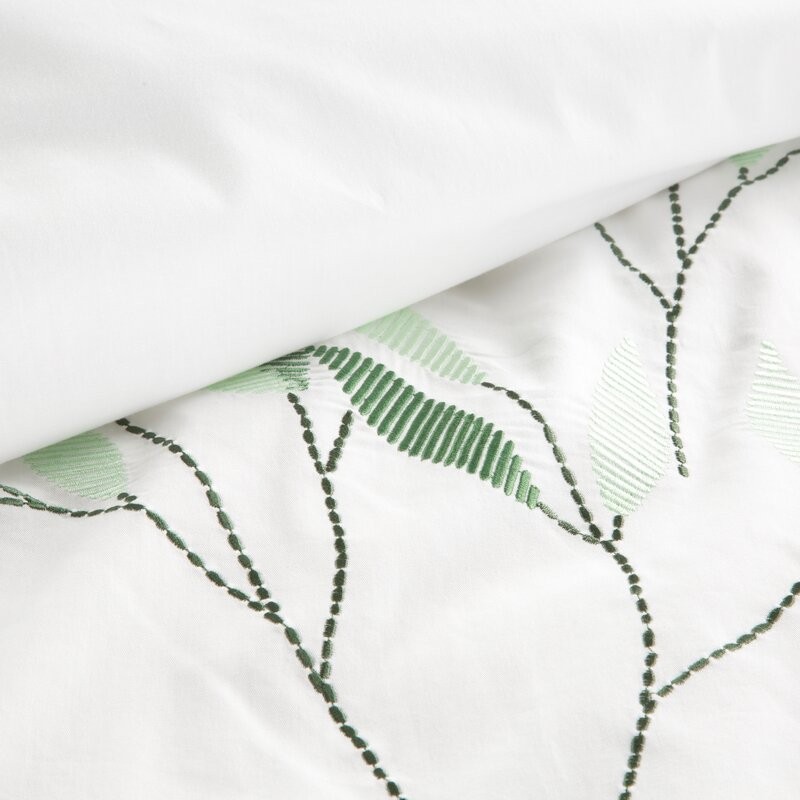 Pościel 220x200 cm bawełniana kolor biały, zielony zdobiona haftowanym wzorem listków Eurofirany Premium