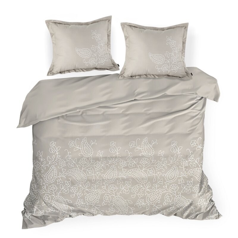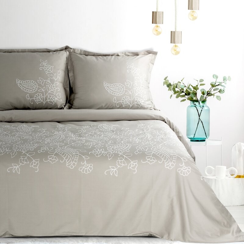 Komplet pościeli bawełnianej z haftem szerokość: 220 cm, długość: 200 cm, kolor: beżowy, Gramatura: 120 GSM, Skład: 100% bawełna