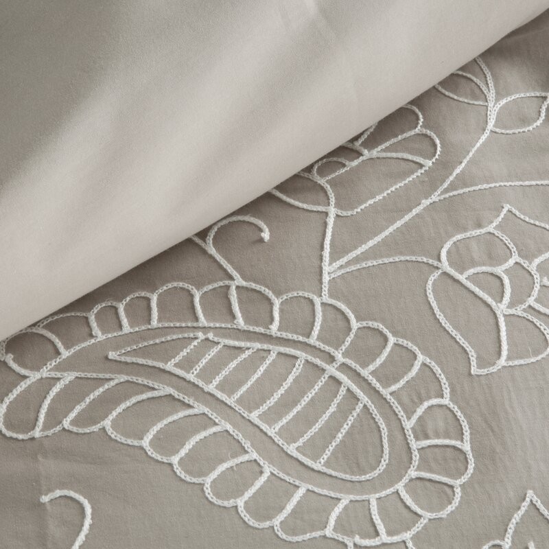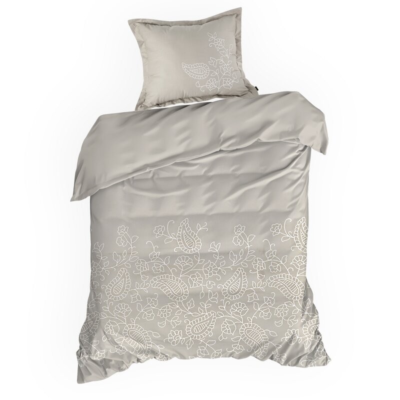 Zestaw wysokiej jakości pościeli bawełnianej zdobionej pastelowym haftem z pastelowym motywem kwiatowym. Elegancka pościel zapinana na zamek błyskawiczny. szerokość: 160 cm, długość: 200 cm, kolor: srebrny, Gramatura: 125 GSM, Skład: satyna, 100%...