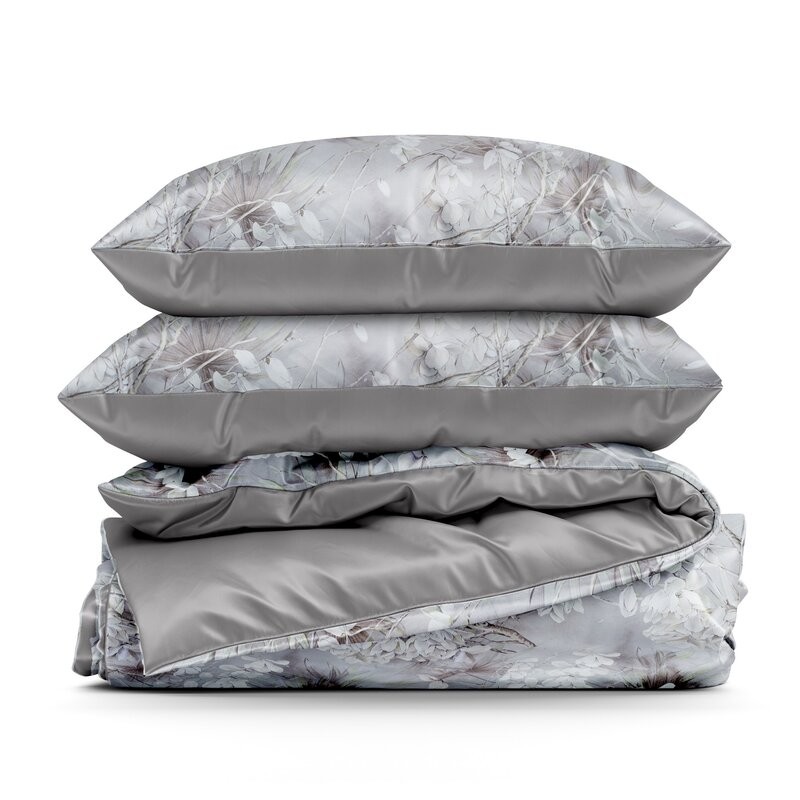 Zestaw wysokiej jakości pościeli bawełnianej zdobionej pastelowym haftem z pastelowym motywem kwiatowym. Elegancka pościel zapinana na zamek błyskawiczny. szerokość: 160 cm, długość: 200 cm, kolor: srebrny, Gramatura: 125 GSM, Skład: satyna, 100%...