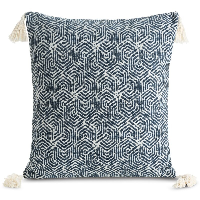 Poszewka na poduszkę 45x45 cm granatowo, kremowa w stylu boho zdobiona chwostami na rogach poszewki FABIA