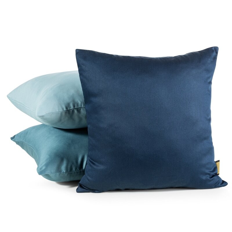 Jednokolorowa, gładka poszewka na poduszkę dekoracyjną lub poduszkę do łóżeczka dziecięcego. Uszyta z miękkiej i oddychającej bawełny, zapinana na zamek zipp. szerokość: 40 cm, długość: 40 cm, kolor: niebieski, Gramatura: 125 GSM, Skład: satyna,...