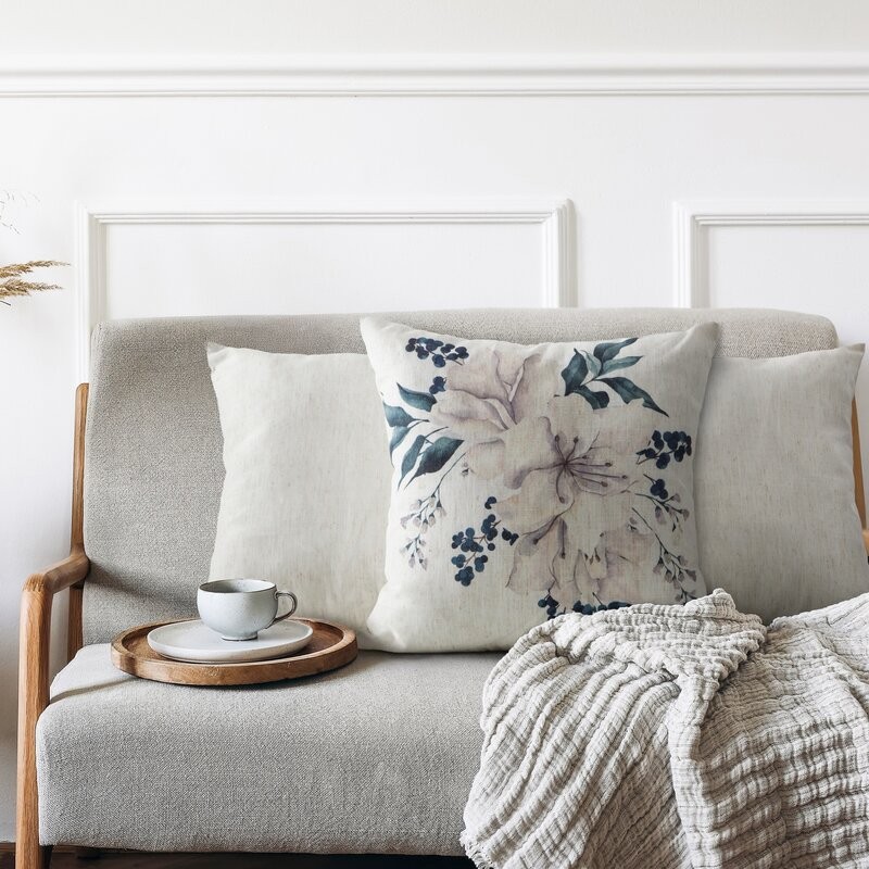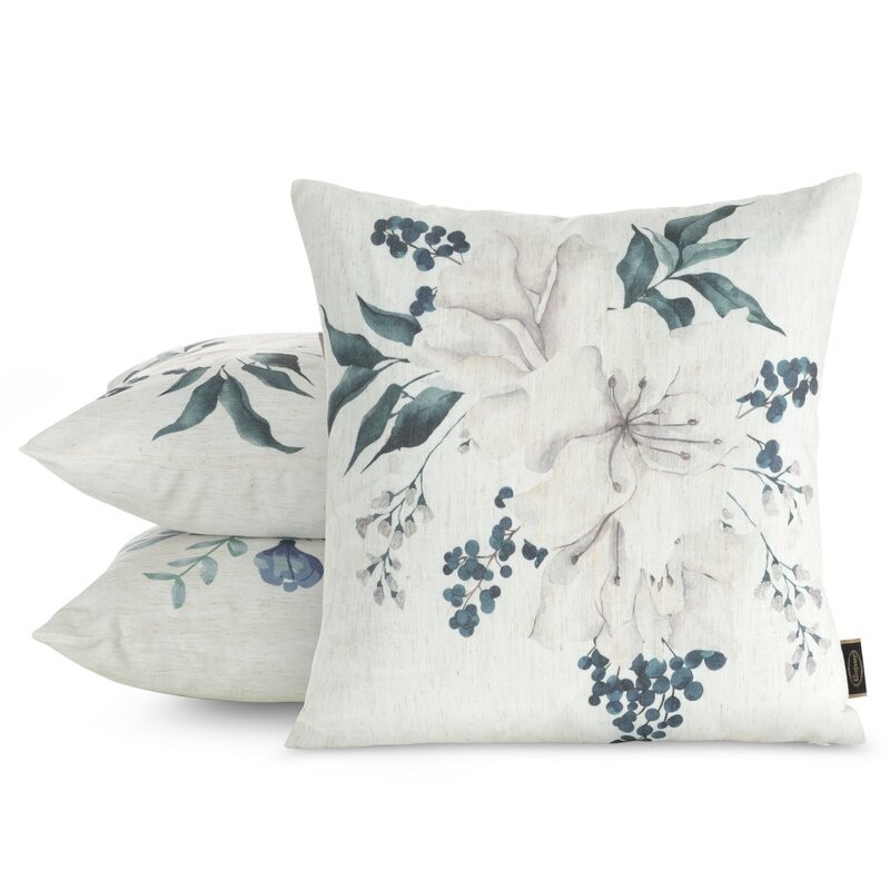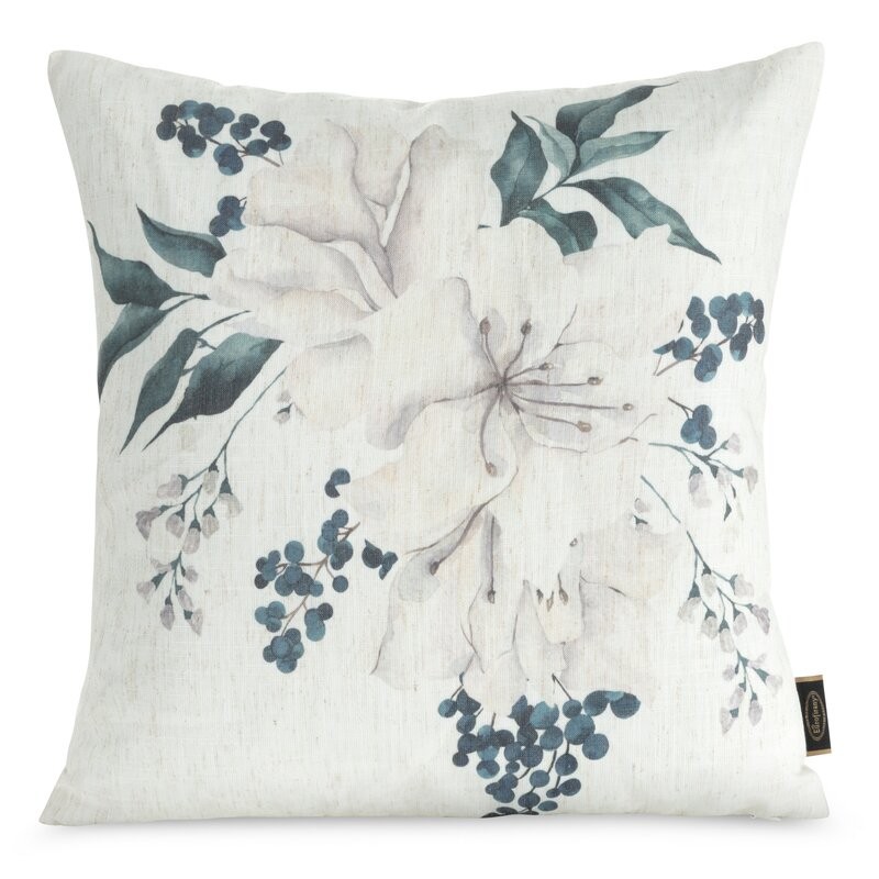 Poszewka dekoracyjna LEN o strukturze lnu nadrukiem subtelnych kwiatów