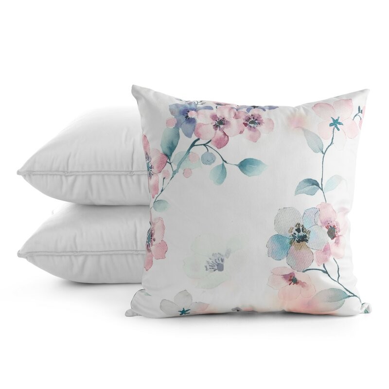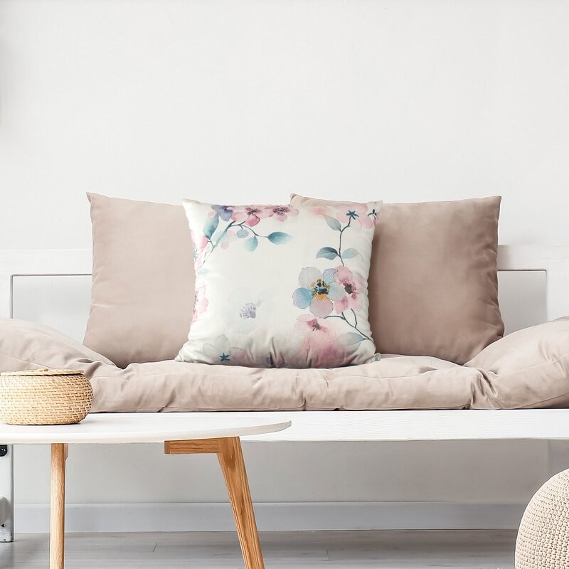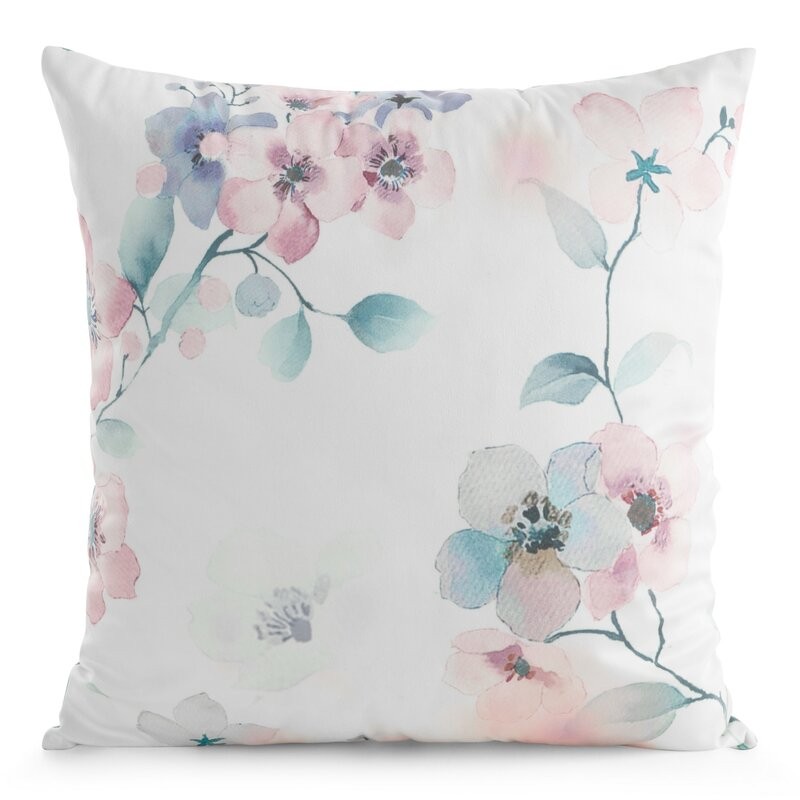 Poszewka wykonana z tkaniny typu mink, z kwiatowym nadrukiem szerokość: 45 cm, długość: 45 cm, kolor: biały, Gramatura: 200 GSM, Skład: 100% poliester