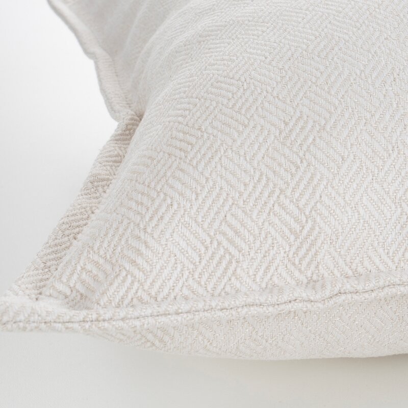 Szenilowa poszewka dekoraycjna z ozdobnym przeszyciem szerokość: 43 cm, długość: 43 cm, kolor: kremowy, Gramatura: 610 GSM, Skład: przód: 92% poliester, 7% rami, 1% len; tył: 70% bawełna, 30% wiskoza