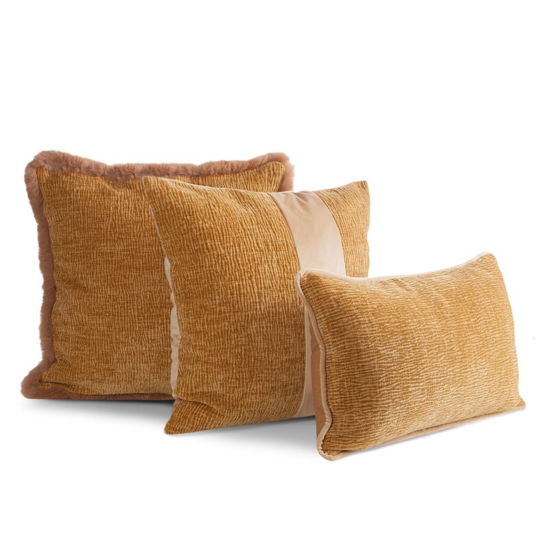 Poszewka na poduszkę 45x45 cm kremowa szenilowa zdobiona pasem z welwetu CARLA 05