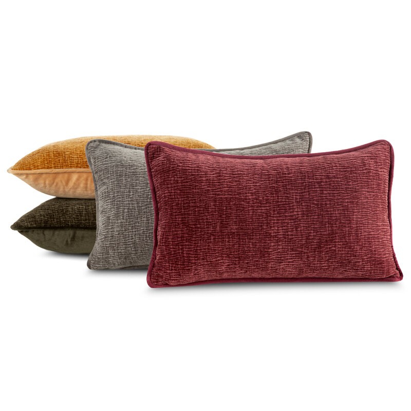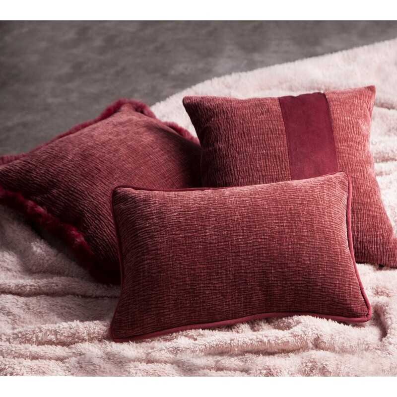 Szenilowa poszewka dekoracyjna z ozdobnym welwetowym pasem szerokość: 45 cm, długość: 45 cm, kolor: bordowy, Gramatura: 330 GSM, Skład: 100% poliester