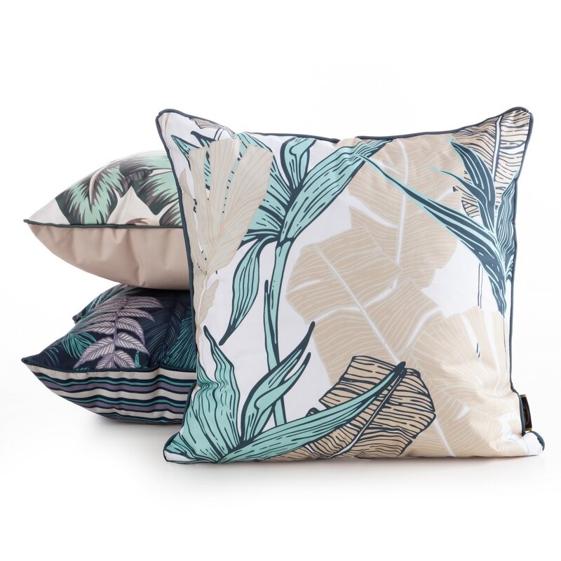 Poszewka GARDEN na taras oraz balkon z tkaniny wodoodpornej zdobiona nadrukiem egzotycznych liści