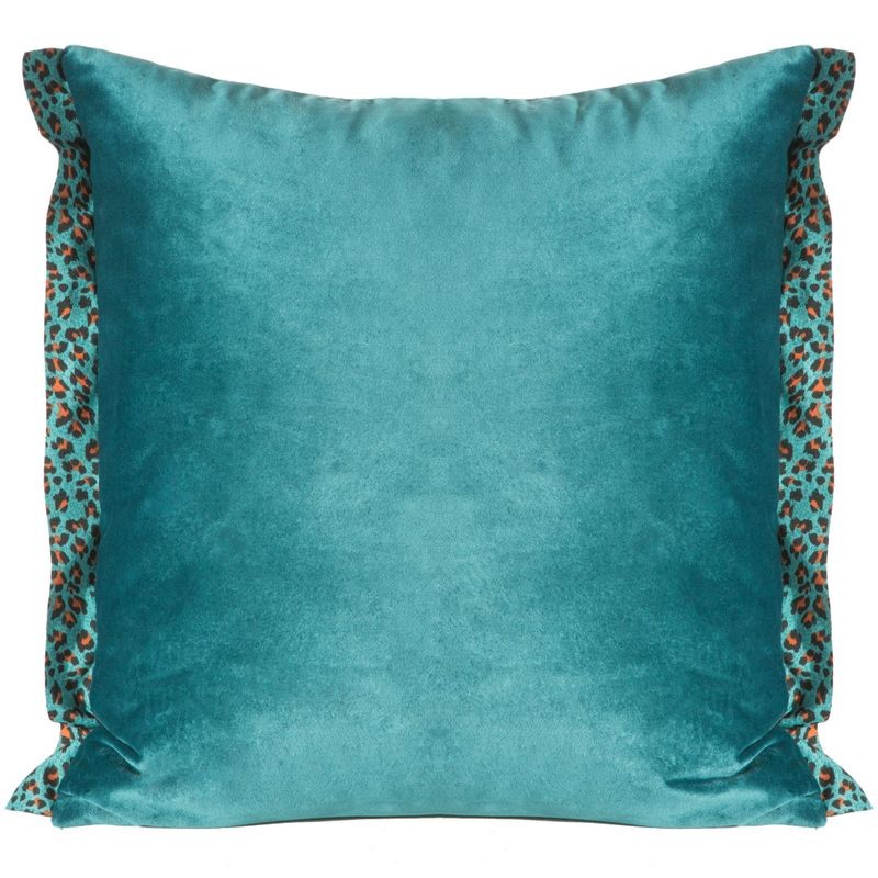 Welvetowa poszewka z nadrukiem,obszyta dekoracyjną lamówką szerokość: 45 cm, długość: 45 cm, kolor: ciemnomiętowy, Gramatura: 250 GSM, Skład: 100%poliester