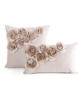 Welwetowa poszewka dekoracyjna z aplikacją w kształcie róż szerokość: 45 cm, długość: 45 cm, kolor: pudrowy, Gramatura: 200 GSM, Skład: 100% poliester