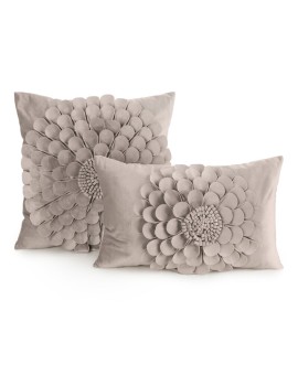 Welwetowa poszewka dekoracyjna z trójwymiarowym motywem kwiatu szerokość: 45 cm, długość: 45 cm, kolor: beżowy, Gramatura: 200 GSM, Skład: 100% poliester