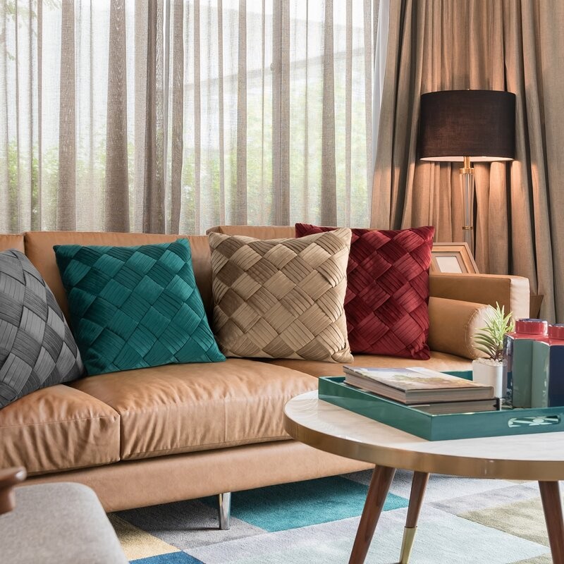 Poszewka SONIA to dekoracja wykonana z gładkiego welwetu. Jest niezwykle przyjemna w dotyku i wyjątkowo miękka. Ten szlachetny materiał sprawdzi się w pomieszczeniach urządzonych w różnych stylach. Klasycznym, nowowczesnym, industrialnym czy art déco. Zaskakująca forma przyciąga uwagę. Ciekawy, przeplatany wzór zachwyci Ciebie i Twoich gości. Miękkie welwetowe poszewki sprawią, że wypoczynek w salonie będzie jeszcze przyjemniejszy. Poszewkami SONIA możesz również udekorować swoją sypialnię, taras lub balkon. Stwórz ciekawą aranżację wybierając również inne kolory z tego modelu!