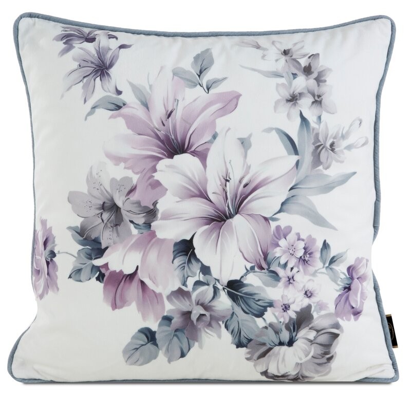 Poszewka VELVET z welwetu zdobiona nadrukiem kwiatów i elegancką lamówką na brzegach
