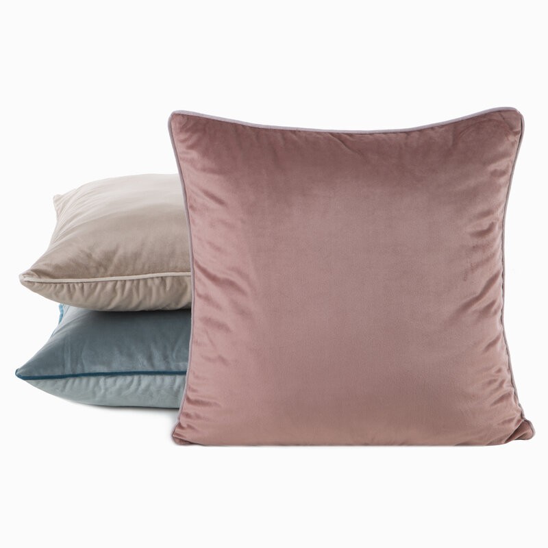 Poszewka welwetowa zdobiona lamówką szerokość: 45 cm, długość: 45 cm, kolor: pudrowy róż, Gramatura: 200 GSM, Skład: 100% poliester