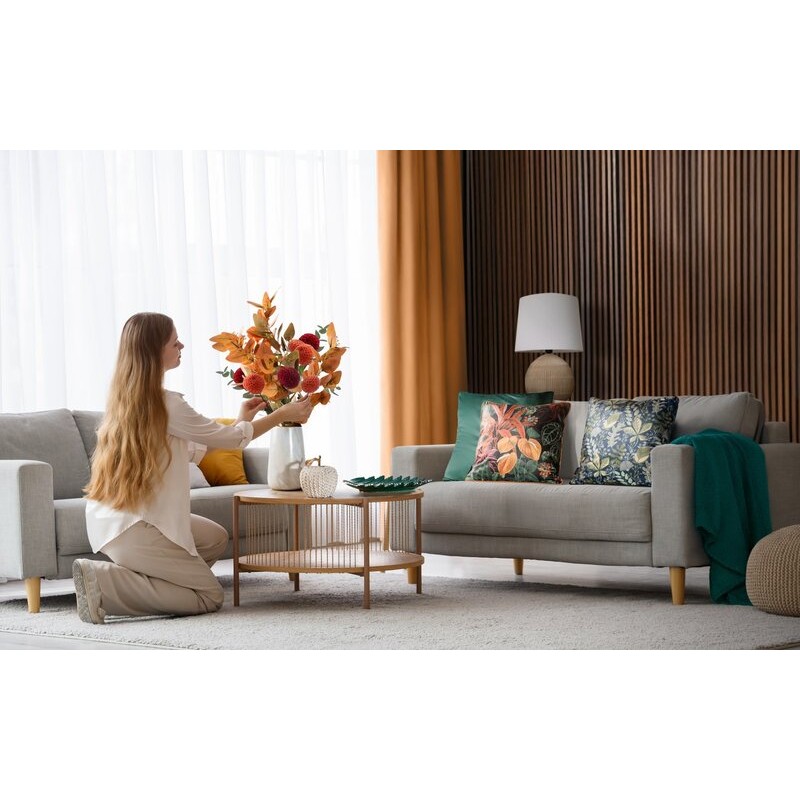 Poszewka z miękkiego welwetu ze złocistym nadrukiem botanicznych liści