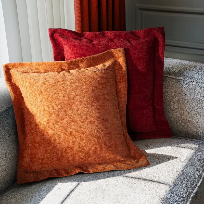 Welvetowa poszewka z nadrukiem,obszyta dekoracyjną lamówką szerokość: 45 cm, długość: 45 cm, kolor: ceglany, Gramatura: 250 GSM GSM, Skład: 100%poliester
