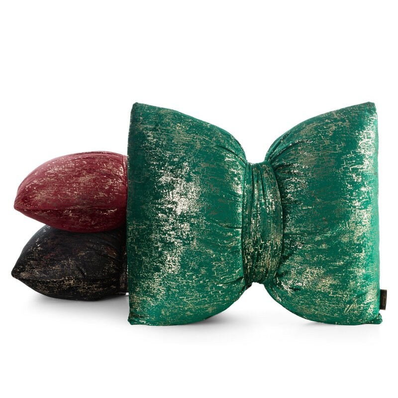 Poduszka dekoracyjna w formie eleganckiej kokardy to wyjątkowy akcent, który doda wnętrzu luksusowego charakteru. Wykonana z miękkiego weluru o głębokim, odcieniu z delikatnym przecieranym połyskiem, pięknie odbija światło i podkreśla świąteczny lub glamour klimat pomieszczenia. Idealna do salonu, sypialni czy pokoju gościnnego – przyciąga wzrok i stanowi efektowny element wystroju.