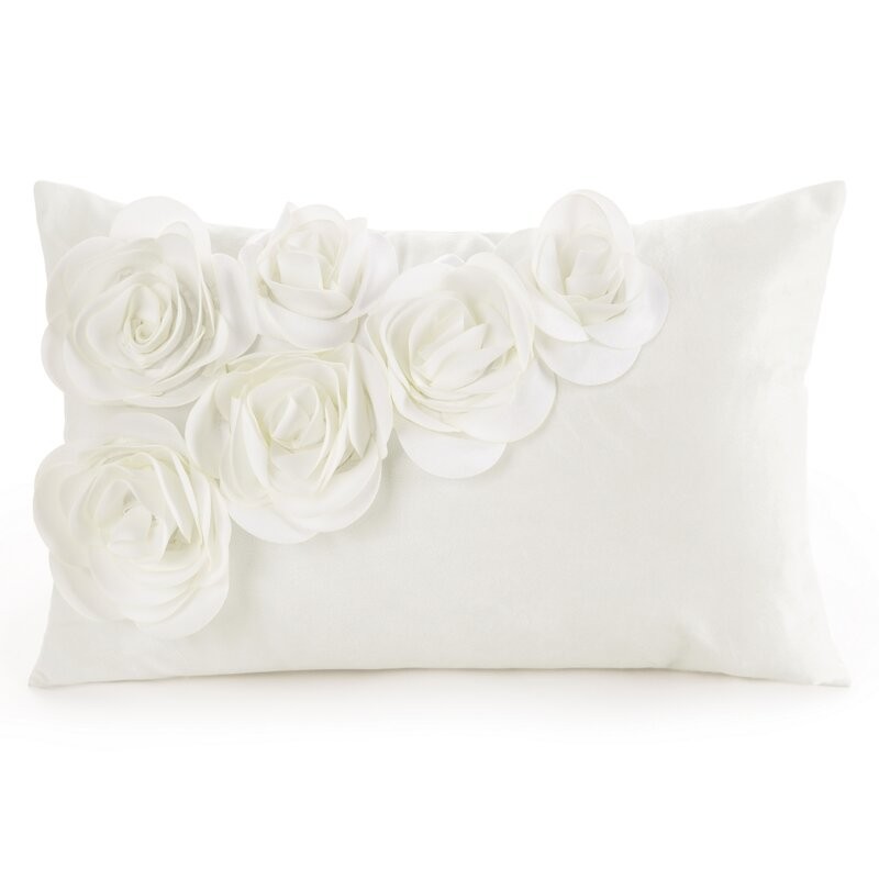 Welwetowa poszewka dekoracyjna z trójwymiarowym motywem kwiatu szerokość: 30 cm, długość: 50 cm, kolor: kremowy, Gramatura: 200 GSM, Skład: 100% poliester
