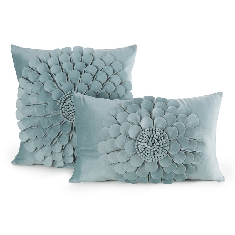 Welwetowa poszewka dekoracyjna z aplikacją w kształcie róż szerokość: 30 cm, długość: 50 cm, kolor: miętowy, Gramatura: 200 GSM, Skład: 100% poliester