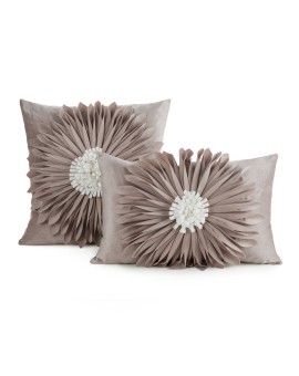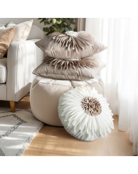Welwetowa poszewka dekoracyjna z trójwymiarowym motywem kwiatu szerokość: 45 cm, długość: 45 cm, kolor: beżowy, Gramatura: 200 GSM, Skład: 100% poliester