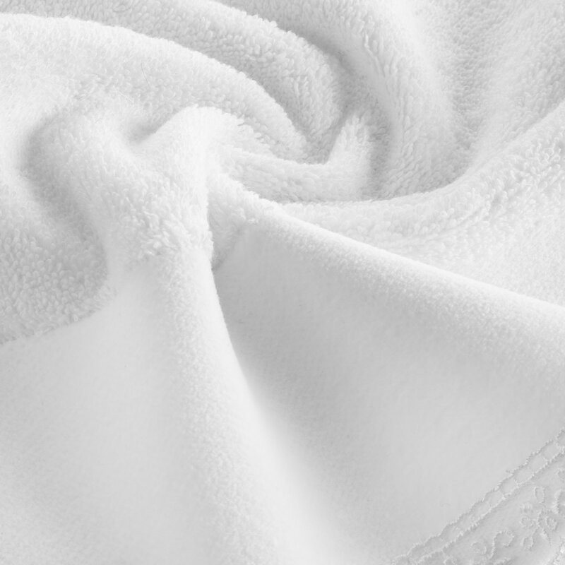 Piękny ręcznik kąpielowy z miękkiej i chłonnej bawełny frotte zdobiony na bordiurze aplikacją w formie serduszek wypełnionych różyczkami. Doskonały na prezent. szerokość: 30 cm, długość: 50 cm, kolor: biały, Gramatura: 500 GSM, Skład: 100% bawełna; część ozdobna: 100% poliester SZT.6