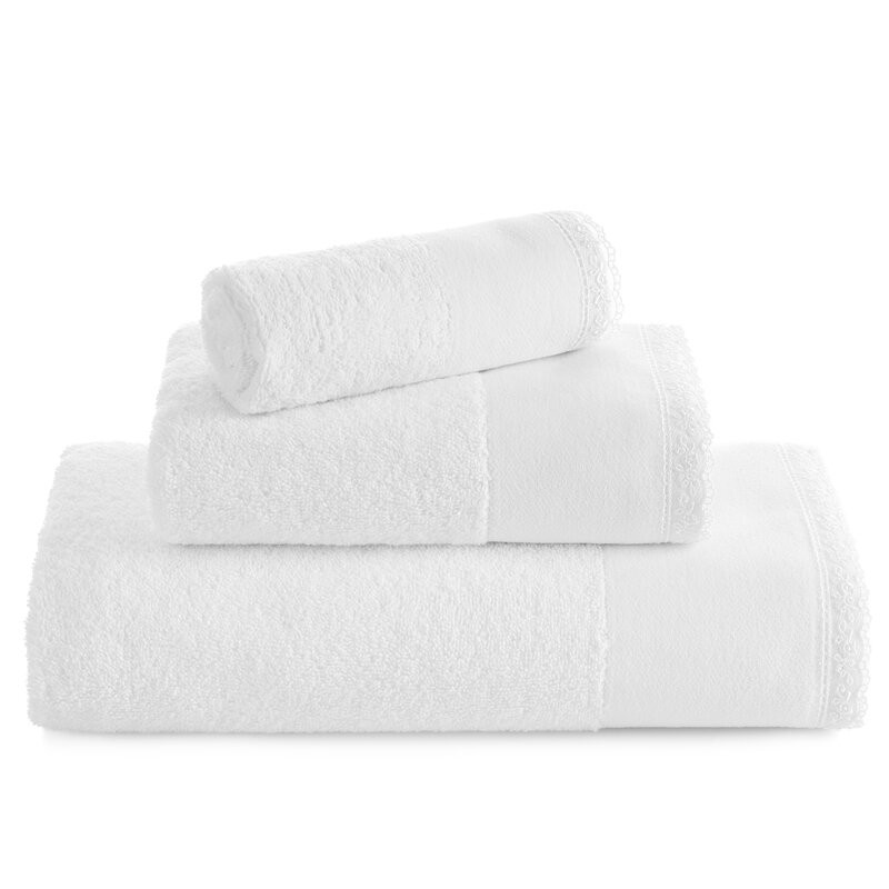 Ręcznik zdobi subtelna bordiura z delikatną koronką oraz starannie wykonany haft, który dodaje całości wyrafinowanego charakteru. To idealne połączenie funkcjonalności i stylu, które sprawdzi się zarówno w nowoczesnych, jak i klasycznych wnętrzach łazienkowych.
