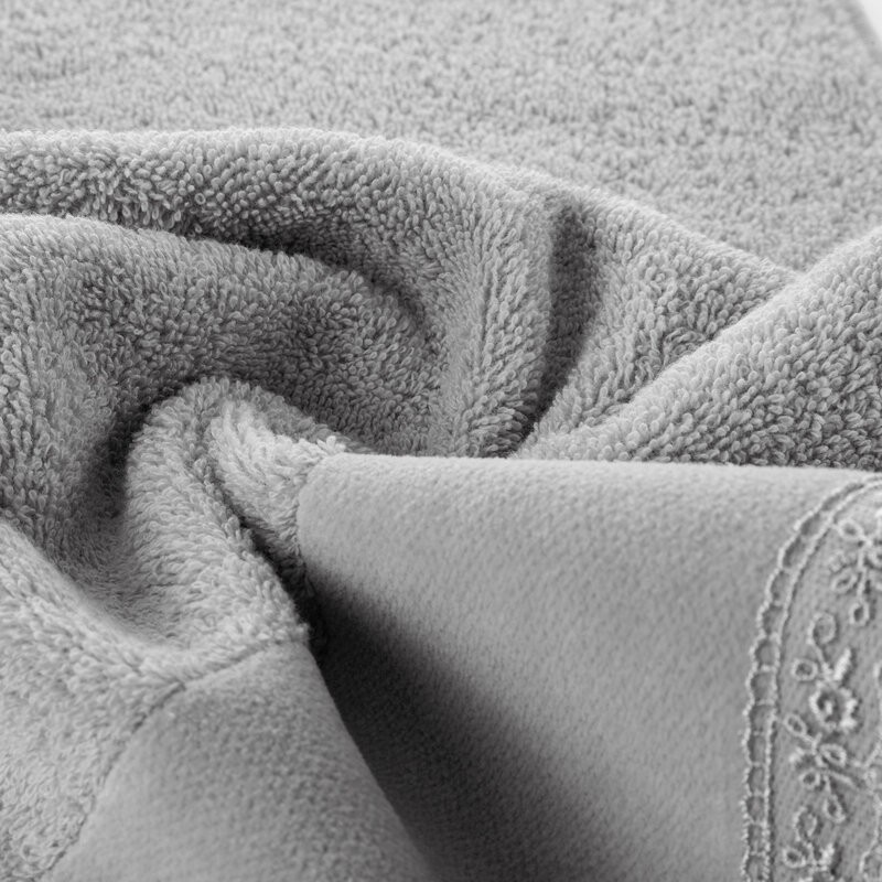 Piękny ręcznik kąpielowy z miękkiej i chłonnej bawełny frotte zdobiony na bordiurze aplikacją w formie serduszek wypełnionych różyczkami. Doskonały na prezent. szerokość: 30 cm, długość: 50 cm, kolor: srebrny, Gramatura: 500 GSM, Skład: 100% bawełna; część ozdobna: 100% poliester SZT.6