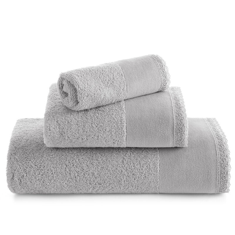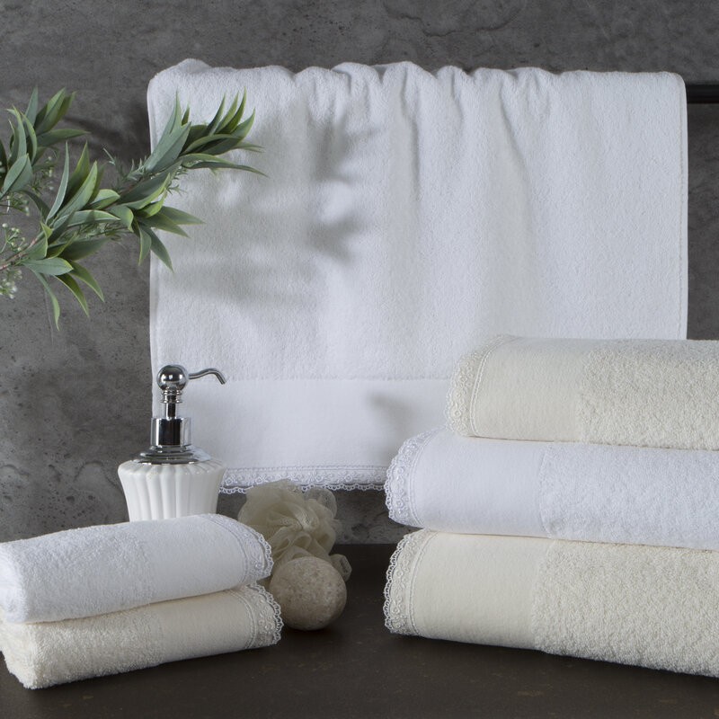 Ręcznik zdobi subtelna bordiura z delikatną koronką oraz starannie wykonany haft, który dodaje całości wyrafinowanego charakteru. To idealne połączenie funkcjonalności i stylu, które sprawdzi się zarówno w nowoczesnych, jak i klasycznych wnętrzach łazienkowych.