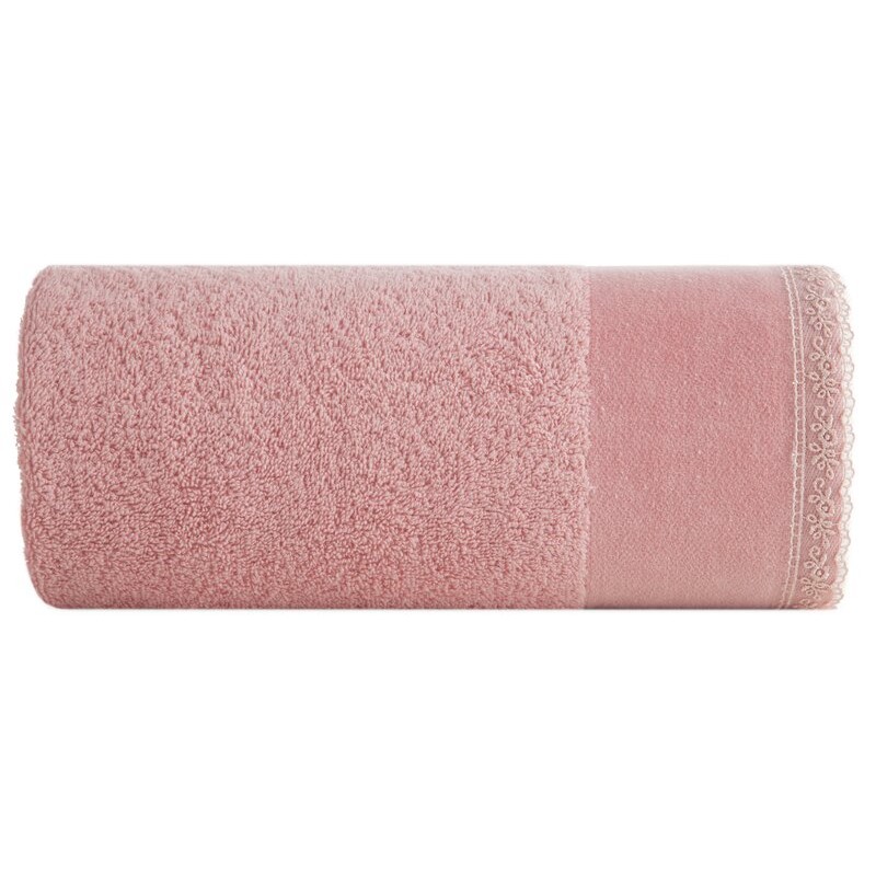 Ręcznik zdobi subtelna bordiura z delikatną koronką oraz starannie wykonany haft, który dodaje całości wyrafinowanego charakteru. To idealne połączenie funkcjonalności i stylu, które sprawdzi się zarówno w nowoczesnych, jak i klasycznych wnętrzach łazienkowych.