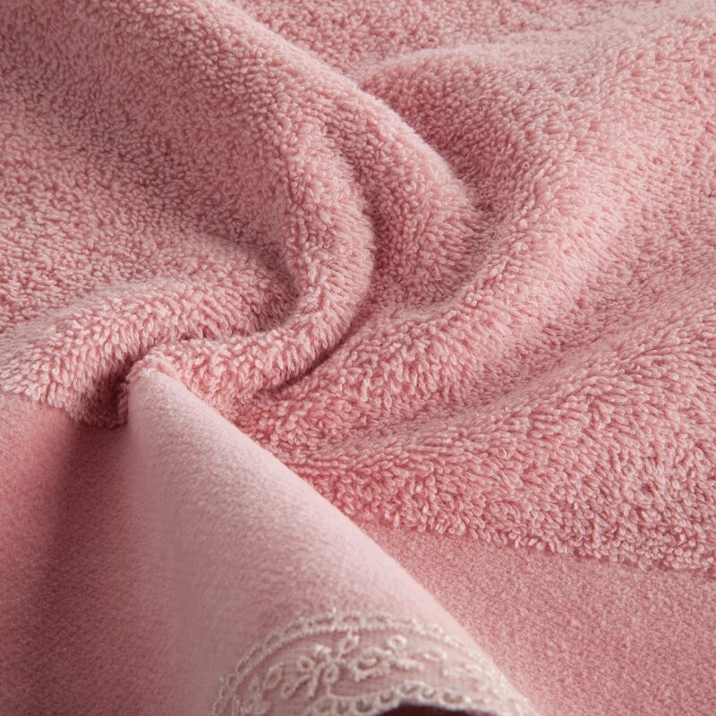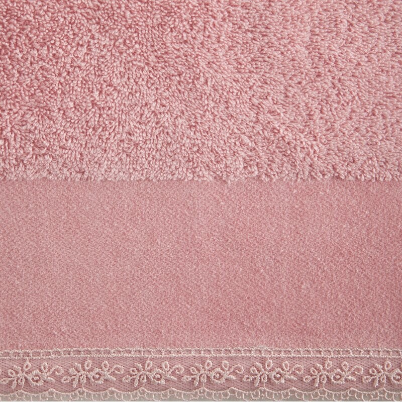 Piękny ręcznik kąpielowy z miękkiej i chłonnej bawełny frotte zdobiony na bordiurze aplikacją w formie serduszek wypełnionych różyczkami. Doskonały na prezent. szerokość: 50 cm, długość: 90 cm, kolor: różowy, Gramatura: 500 GSM, Skład: 100% bawełna; część ozdobna: 100% poliester SZT.6